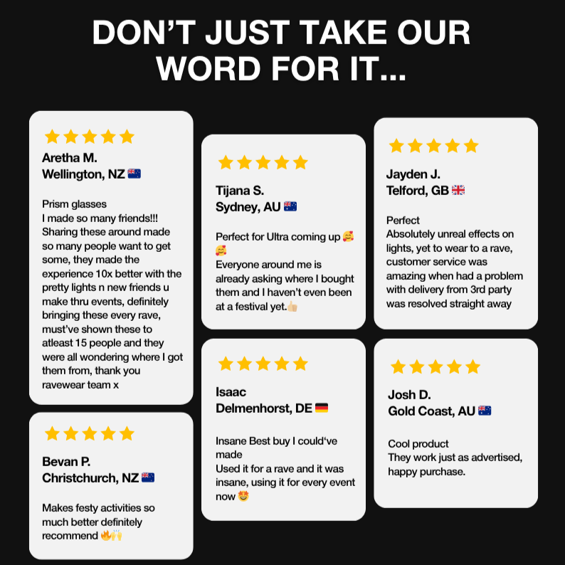 ⭐️⭐️⭐️⭐️⭐️ “Way better than I expected. These make every light show 10x more epic.” – Amber V.